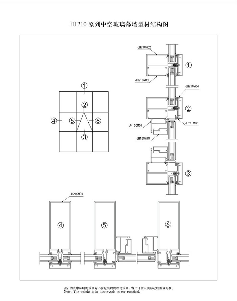 210 系列中空玻璃幕墻型材結構圖