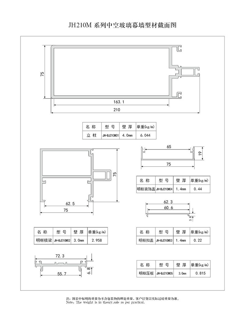 210 系列中空玻璃幕墻型材結構圖