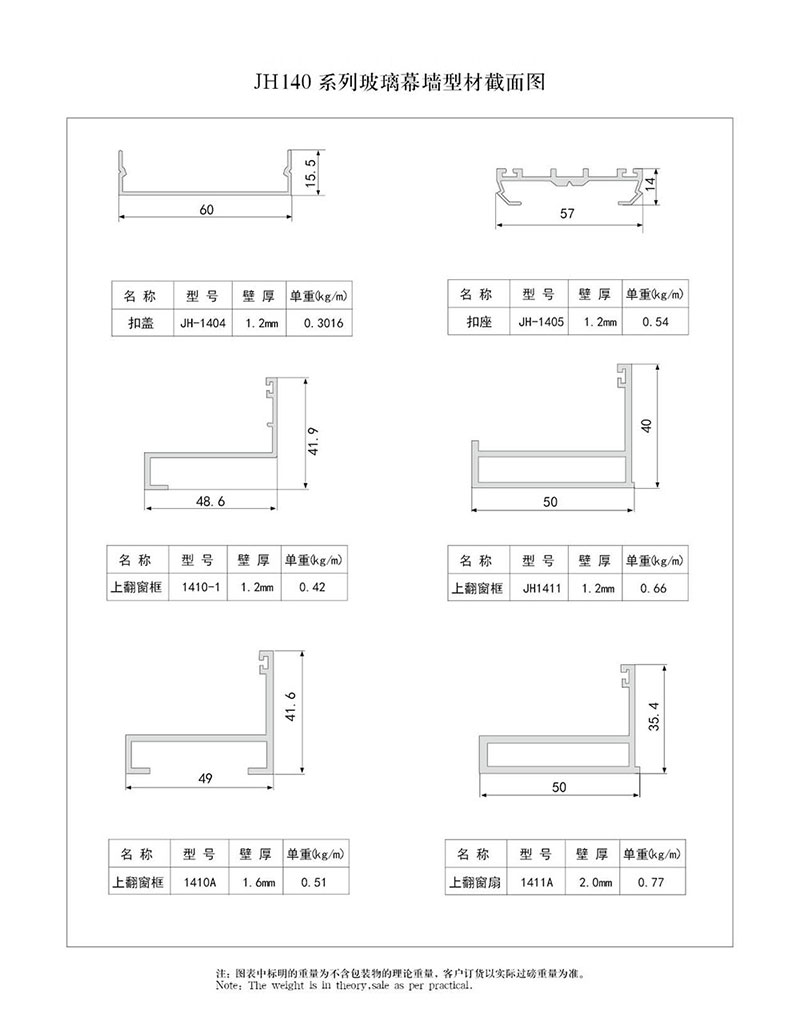 140系列玻璃幕墻型材截面圖